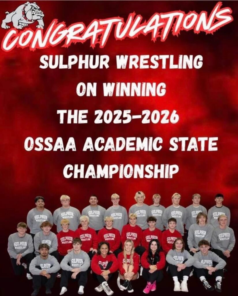 That same spirit carried over to the wrestling room, where Sulphur’s grapplers quietly built something special. Balancing early-morning weigh-ins, late practices, and a demanding class load, the Bulldogs wrestling team attacked homework with the same intensity they brought to the mat. Their reward came not from a final takedown but from a report from the OSSAA: Sulphur had captured the 2025–2026 Academic State Championship. Posed together in their team sweatshirts, they represented a school where excellence wears many uniforms—and where champions are measured by heart, hustle, and GPA as much as by scores on a scoreboard.